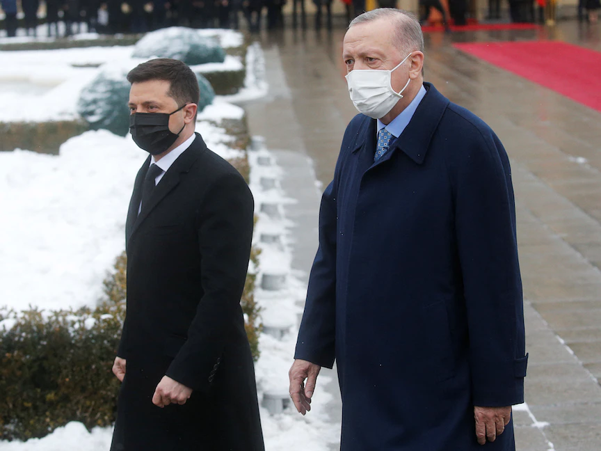 وقال الرئيس التركي قبيل انطلاق زيارته إلى أوكرانيا، إن بلاده "تتابع التوتر بين موسكو وكييف عن كثب، ونعرب في كل منصة عن دعمنا لوحدة أراضي وسيادة أوكرانيا".