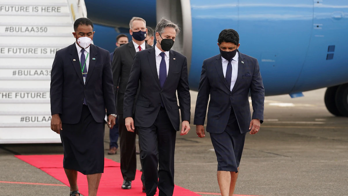 ووصل بلينكن إلى فيجي بعد زيارة مدينة ملبورن الأسترالية، حيث التقى نظراءه من أستراليا والهند واليابان. وتشكل الدول الأربع ما يسمى تحالف "كواد"، وهو تكتل في المحيطين الهندي والهادئ، أنشئ لمواجهة النفوذ الإقليمي للصين.