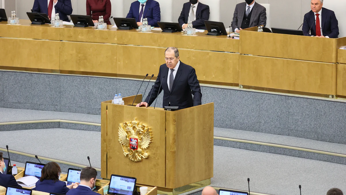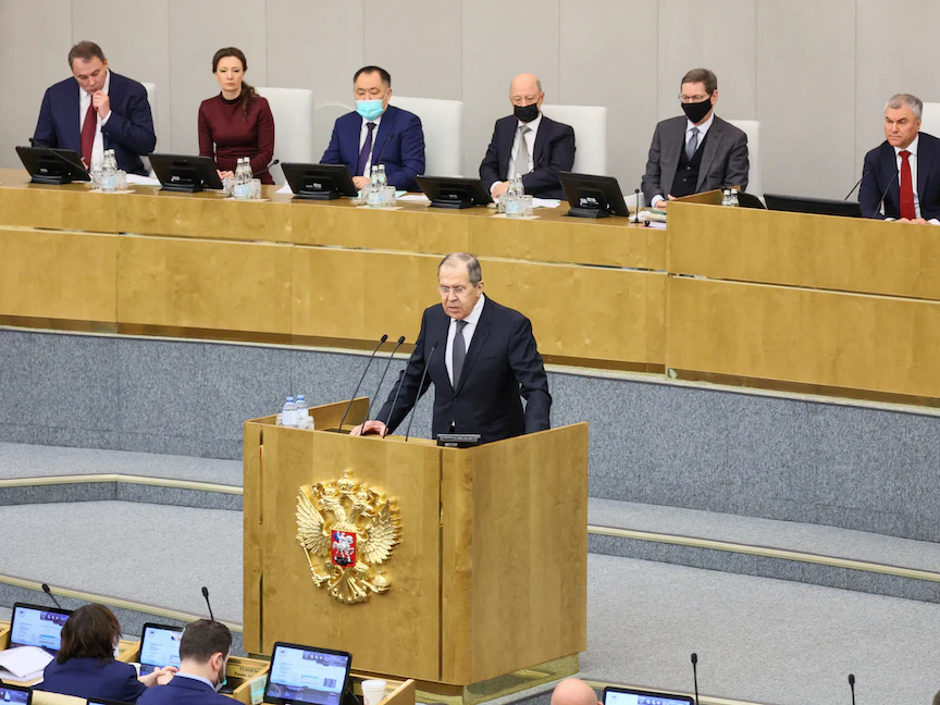 وزير الخارجية الروسي سيرجي لافروف يلقي كلمة في مجلس الدوما بالعاصمة موسكو- 26 يناير 2022 - REUTERS