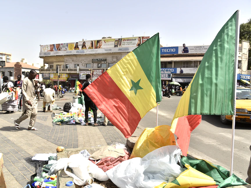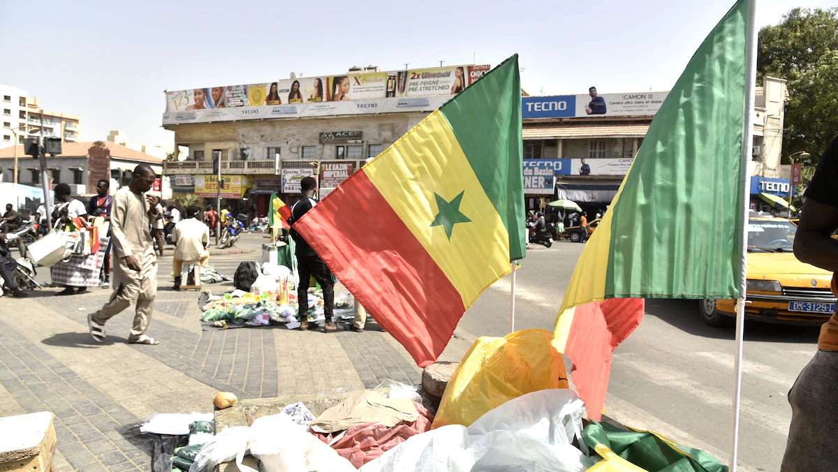 عرض أعلام السنغال للبيع في شوارع داكار. 4 فبراير عام 2022. - AFP