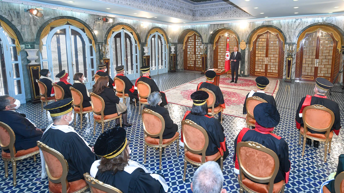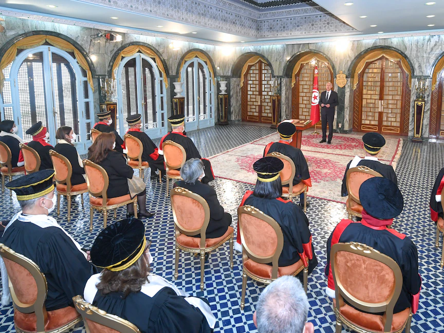 وأعلنت الرئاسة التونسية في بيان أن سعيّد "أشرف اليوم (الاثنين) على موكب أداء اليمين من قِبل أعضاء المجالس المؤقتة للقضاء العدلي والإداري والمالي"، مشيرةً إلى أنه أصدر كذلك "أمراً رئاسياً يتعلق بتسمية أعضاء بالمجالس المؤقتة للقضاء".