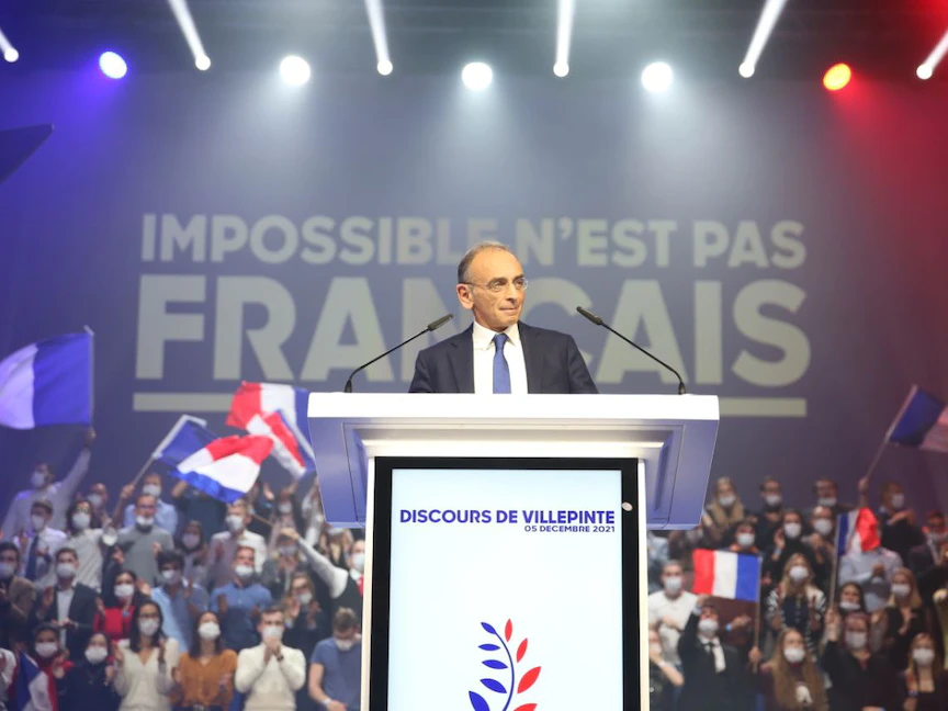 وباعد زمور، الذي حظي بدعم ماريون ماريشال ابنة شقيقة مارين لوبان، نفسه عن الرجل الذي أدى التحية النازية في لقاء له بمدينة تولون. وقال: "الرجل عقله ليس فيه، ولا مكان له في لقاءاتي، ولكننا نركز على التفاصيل هنا، على رجل أحمق لا مكان له، بينما نتجاهل الحماس الكبير خلال التجمع الانتخابي حيث كانت هناك أعلام فرنسية في كل مكان".