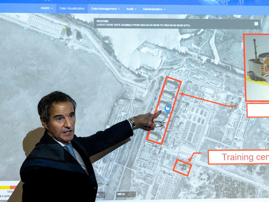 ومع انقطاع نقل البيانات عن بُعد وعدم تمكّن الهيئة الناظمة الأوكرانية من الاتصال بالمنشأة النووية إلا عن طريق البريد الإلكتروني، كرّر جروسي عرضه القيام بزيارة إلى الموقع أو إلى أي مكان آخر للحصول من جميع الأطراف على "التزام بشأن السلامة والأمن" في محطات الكهرباء الأوكرانية العاملة بالطاقة النووية.