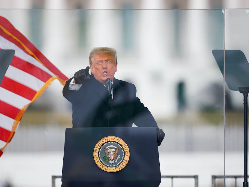 الرئيس الأميركي السابق دونالد ترمب خلال كلمته أمام أنصار في 6 يناير الماضي - REUTERS