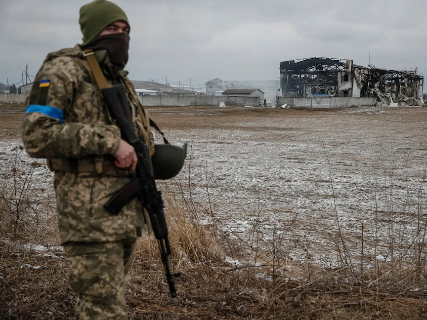 جندي أوكراني على خط المواجهة شمال العاصمة كييف- 13 مارس 2022 - REUTERS