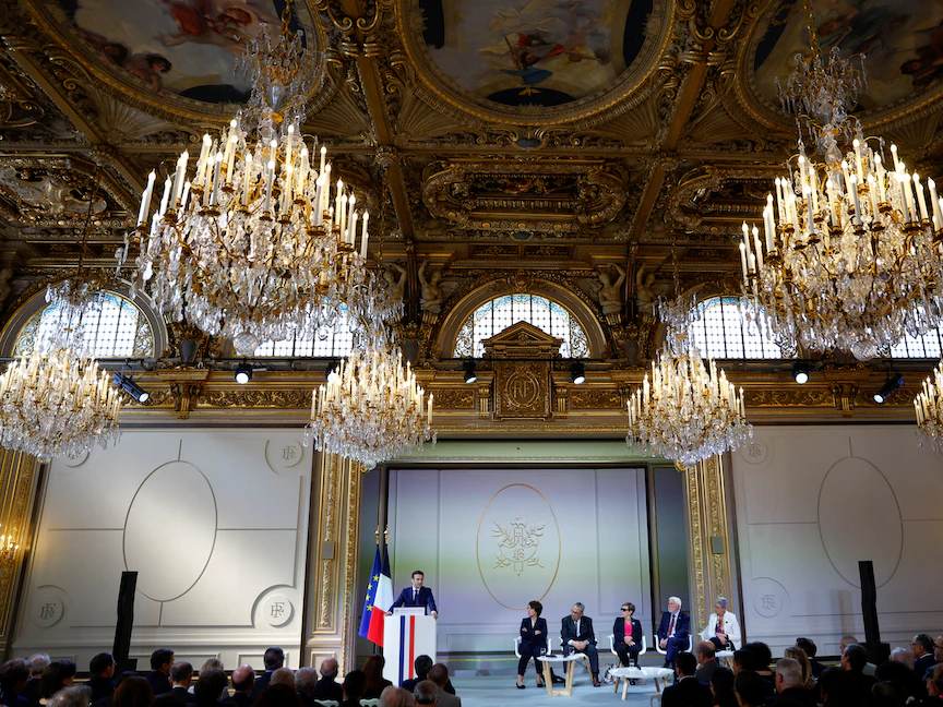 أحيا الرئيس الفرنسي إيمانويل ماكرون، السبت في قصر الإليزيه ذكرى مرور 60 عاماً على توقيع اتفاقيات "إيفيان" بين وفد من الحكومة الفرنسية وممثلين عن "جبهة التحرير الوطني" الجزائرية، مشدداً على المبادرات المتعلقة بذاكرة حرب الجزائر، ومؤكداً قناعته بأنه "سيأتي يوم تسلك فيه الجزائر هذا الطريق".