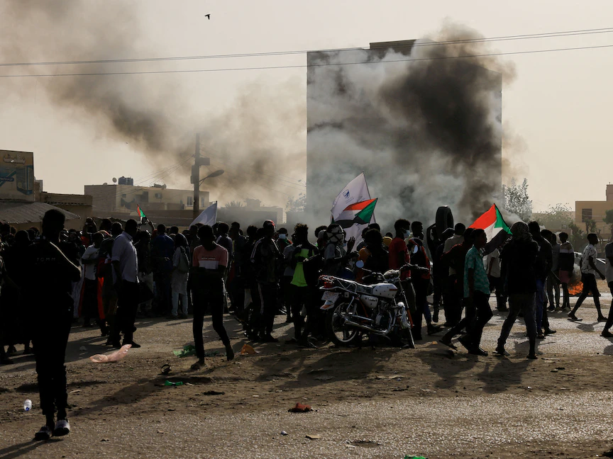 متظاهرون في مسيرة ضد الحكم العسكري في الخرطوم - السودان - 10 فبراير 2022 - REUTERS