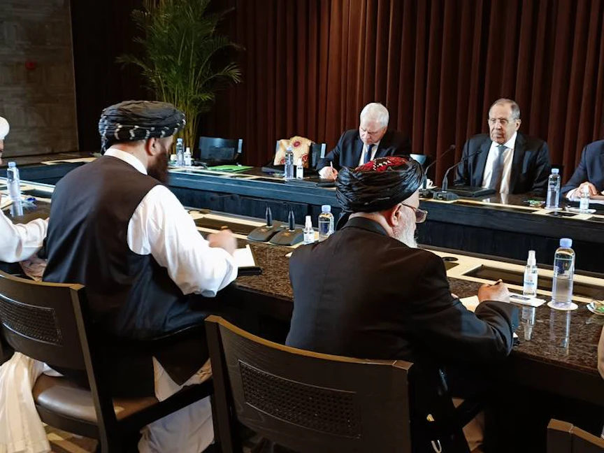 وذكرت الخارجية الروسية في بيان على تويتر، أن لافروف التقى مع أمير خان متقي على هامش اجتماع وزراء خارجية الدول المجاورة لأفغانستان في تونشي.