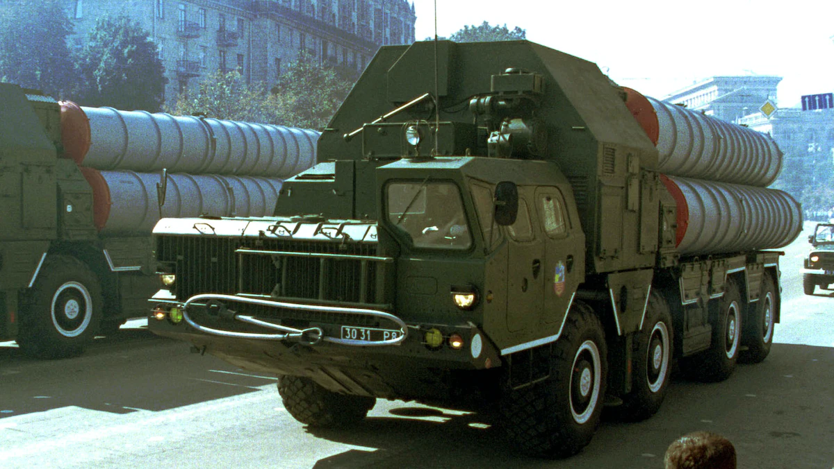 منظومة دفاع جوي من طراز "إس 300" خلال عرض عسكري في العاصمة الأوكرانية كييف - 24 أغسطس 2001 - REUTERS
