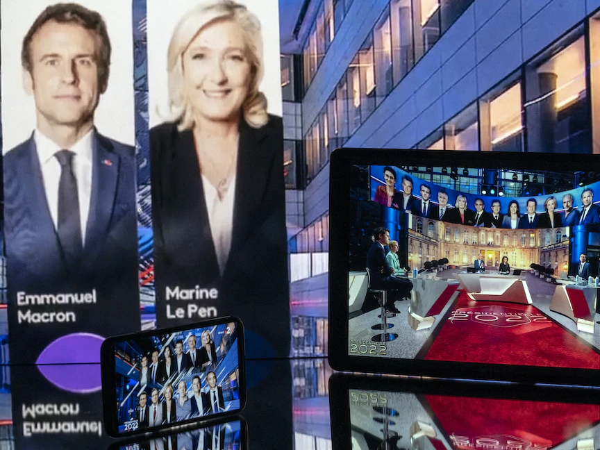 يقرر الفرنسيون في 24 أبريل الجاري ما إذا كانوا سينتخبون الرئيس الوسطي إيمانويل ماكرون لفترة جديدة، أو أنهم سيقومون بنسف إجماع سائد منذ عقود على اختيار مرشح التيار الرئيسي لمصلحة مرشحة اليمين المتطرف مارين لوبان.