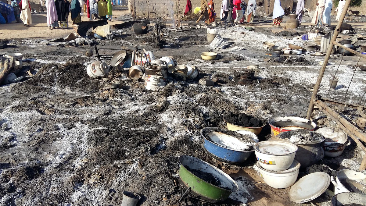 أضرار لحقت بمخيم للنازحين بعد هجوم شنه أعضاء ينتمون لـ"بوكو حرام" في نيجيريا - 1 نوفمبر 2018. - REUTERS