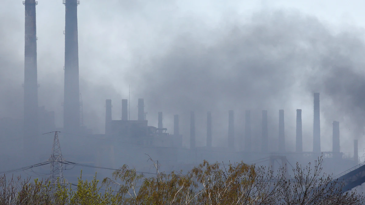تصاعد الدخان فوق مصنع "آزوف ستال" للصلب في مدينة ماريوبل الأوكرانية - 21 إبريل 2022 - REUTERS