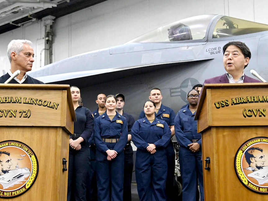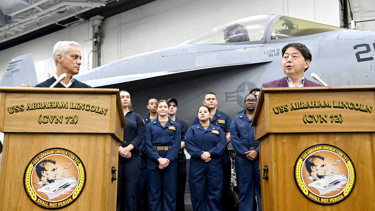 تعهد وزير خارجية اليابان يوشيماسا هاياشي السبت، خلال زيارة لحاملة طائرات أميركية تجوب مياه آسيا، بأن تقوي بلاده جيشها لمساعدة الولايات المتحدة في الحفاظ على أمن المنطقة.