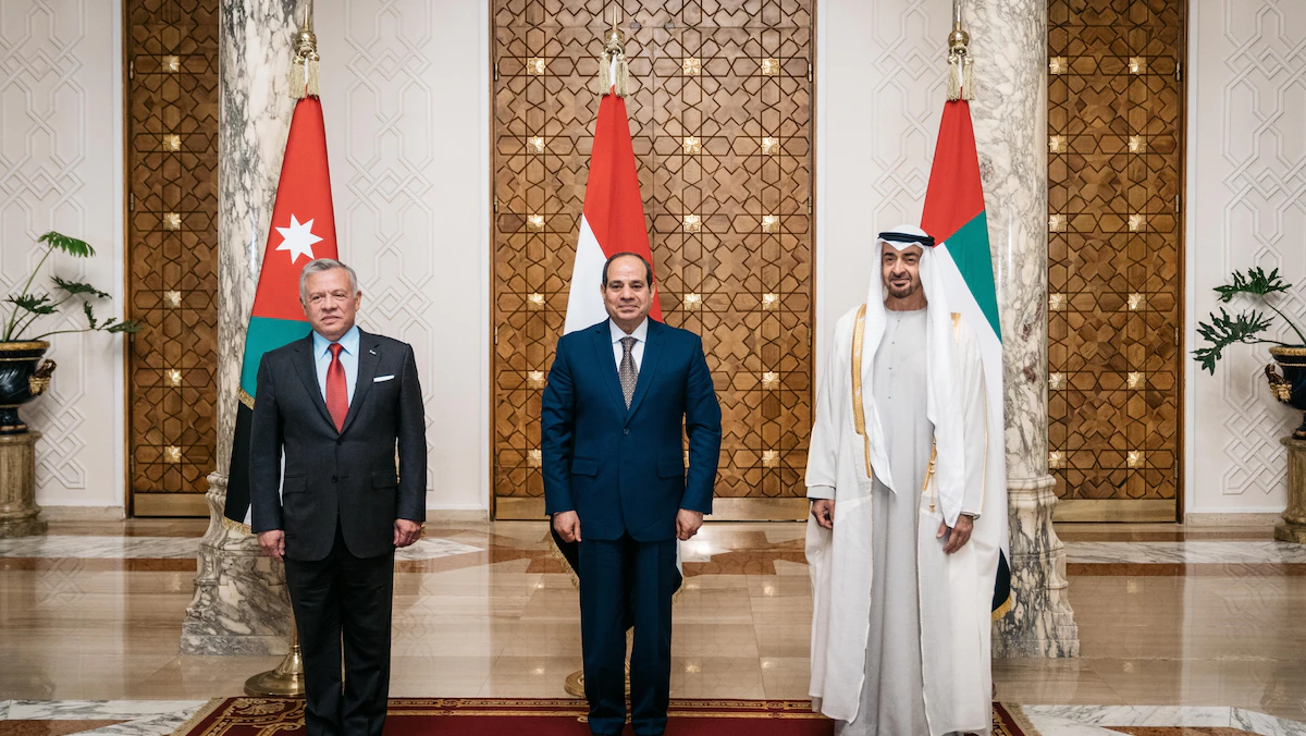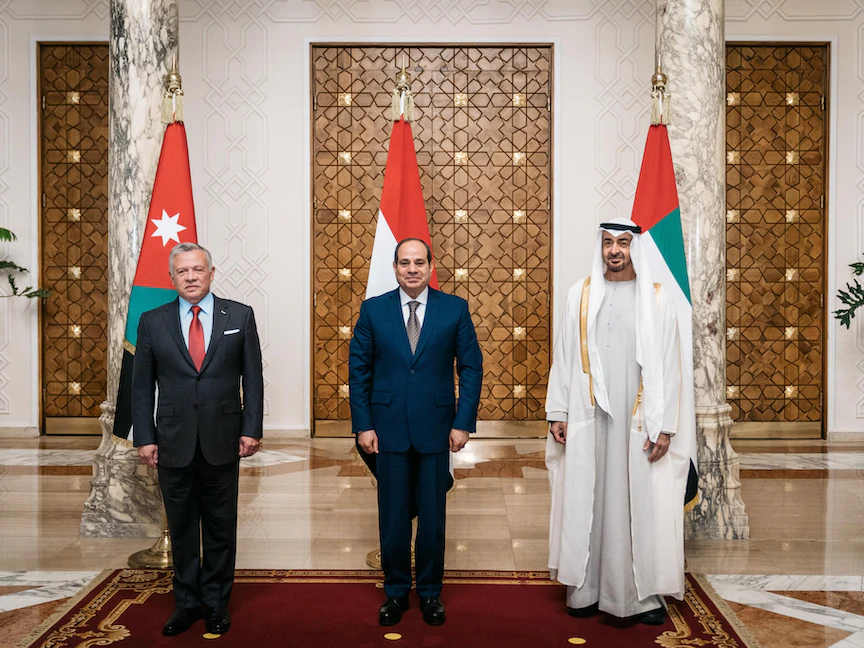 وصرح المتحدث باسم الرئاسة المصرية بأن الرئيس السيسي أكد تطلع مصر لتعزيز التعاون البناء بين مصر والأردن والإمارات، و"الانطلاق سوياً نحو آفاق واسعة من الشراكة الاستراتيجية التي تؤسس لعلاقات ممتدة وتحقق المصالح المشتركة، وتصب في خانة تعزيز العمل العربي المشترك"، وخاصةً في ظل التحديات الكبيرة التي تموج بها المنطقة، فضلاً عن الأزمات الاقتصادية والاجتماعية الناجمة عن التطورات الإقليمية والدولية المتعددة.