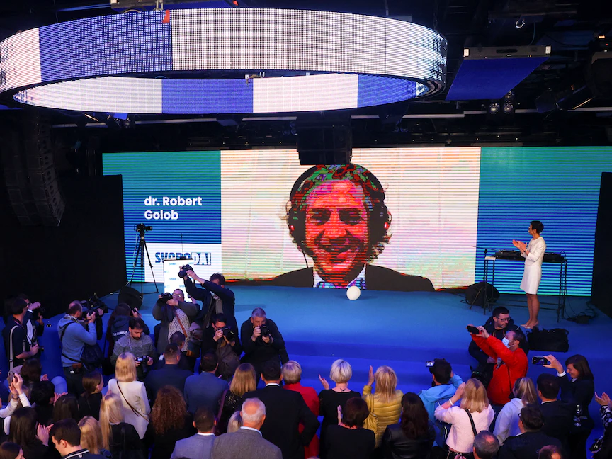 تصدر روبرت جولوب نتائج الانتخابات التشريعية في سلوفينيا، الأحد، وفقاً لتقديرات، متقدماً بفارق كبير على رئيس الوزراء المثير للجدل يانيز يانسا المتهم بانتهاج الأسلوب "المتسلط" للمجري فيكتور أوربان.