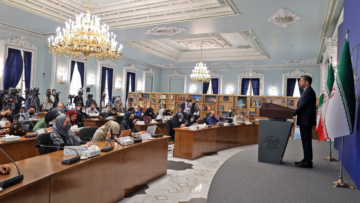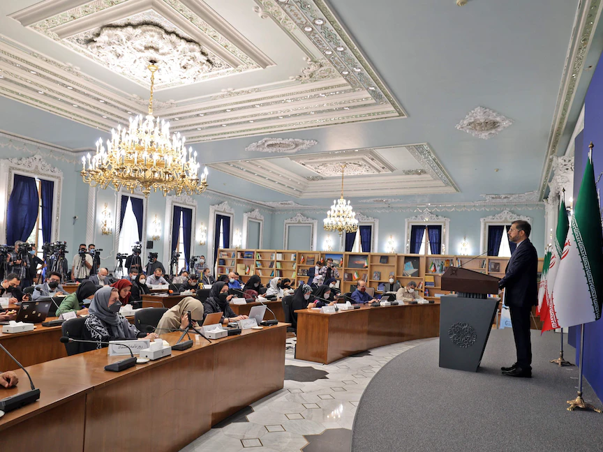 المتحدث باسم الخارجية الإيرانية سعيد خطيب زادة خلال مؤتمر صحافي في طهران- 25 أبريل 2022 - AFP
