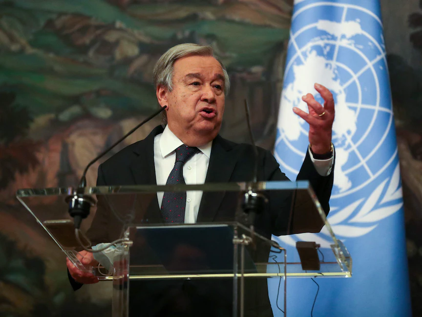 كذلك، دعا الأمين العام إلى إجراء تحقيق مستقلّ في "جرائم الحرب الممكنة"، التي تتهم كييف وعواصم غربية عدة، القوات الروسية بارتكابها في أوكرانيا، وهو ما تنفيه موسكو.