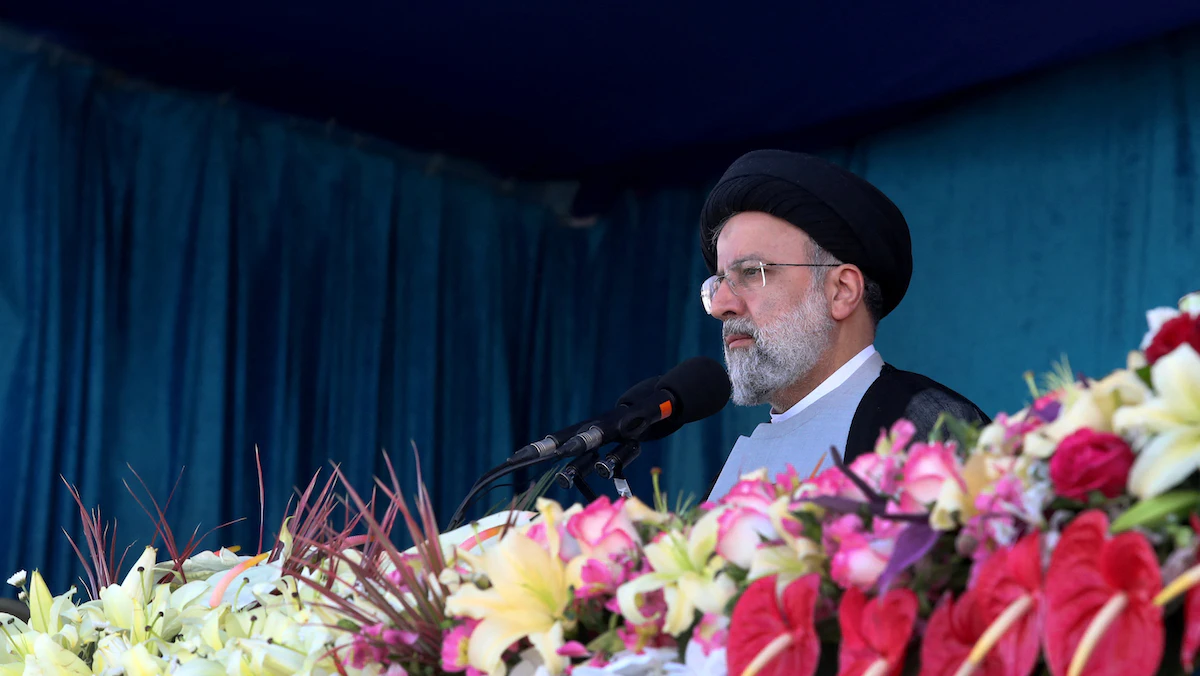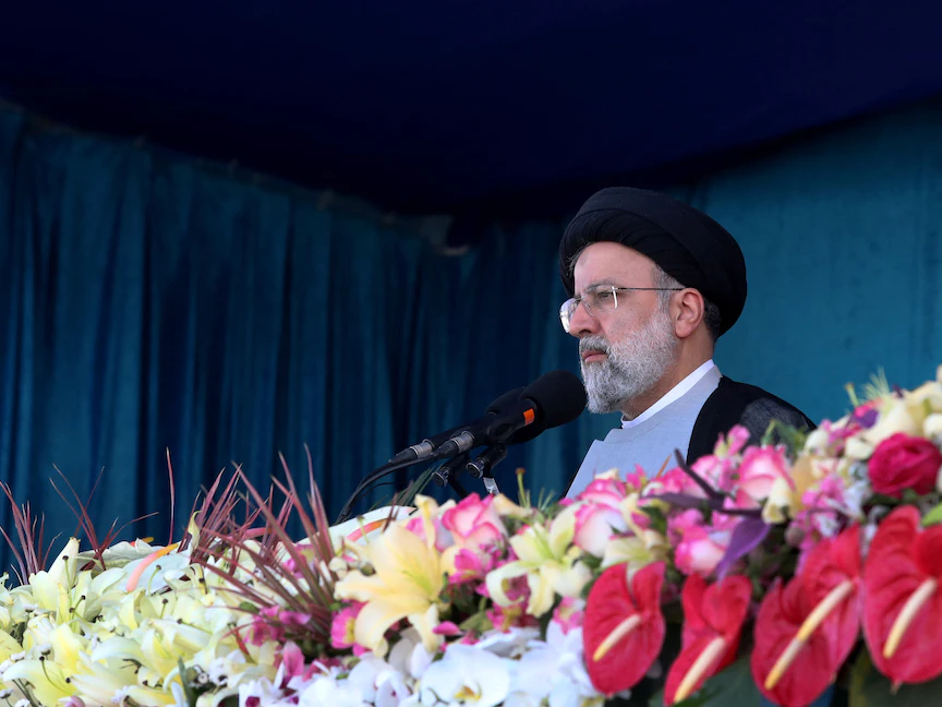 الرئيس الإيراني إبراهيم رئيسي يلقي كلمة خلال مراسم يوم الجيش في طهران، إيران. 18 أبريل 2022. - REUTERS