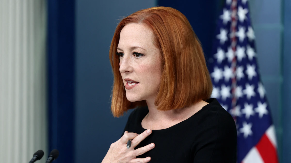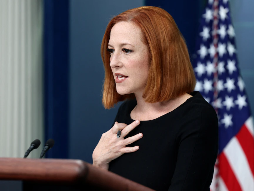 المتحدثة باسم البيت الأبيض جين بساكي خلال إيجاز صحافي في البيت الأبيض 27 أبريل 2022 - REUTERS