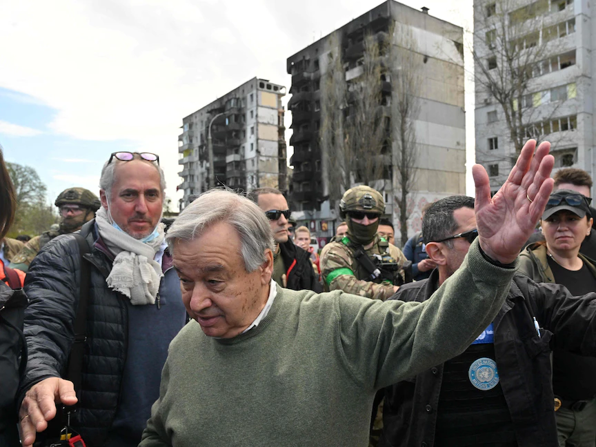 وزار جوتيريش، الخميس، في ضواحي كييف، بوتشا وإيربين وبوروديانكا، التي شهدت انتهاكات نسبتها أوكرانيا إلى الجيش الروسي، الذي يواصل هجومه في شرق وجنوب أوكرانيا.