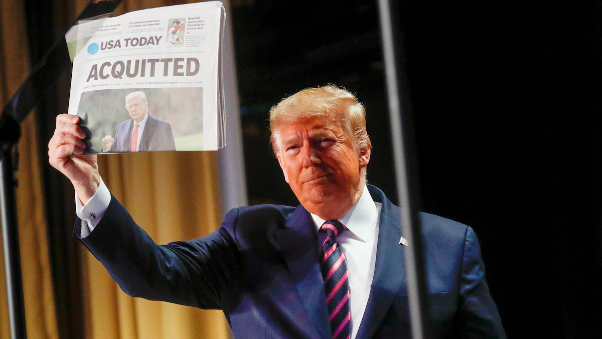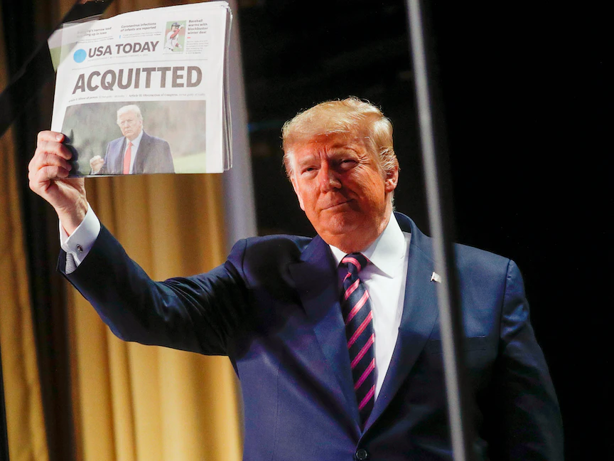 وبعد صدور قرار الشيوخ، أصدر دونالد ترمب بياناً قال فيه إن "محاكمة العزل في مجلس الشيوخ كانت أسوأ مرحلة اضطهاد أخرى في تاريخ بلادنا".