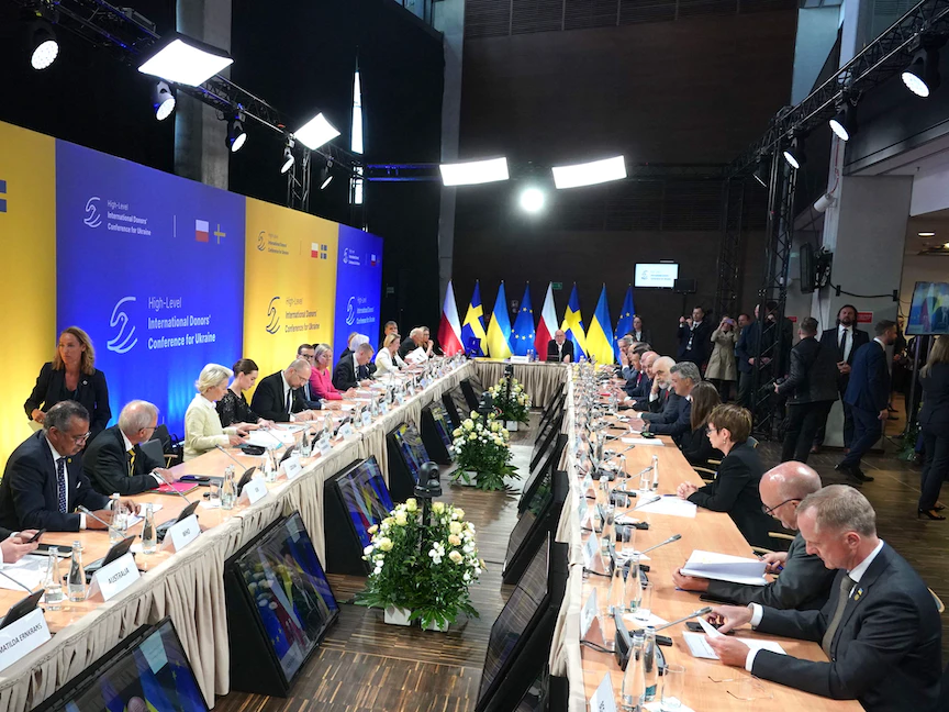 واستضافت بولندا والسويد بالتعاون مع رئيسي المفوضية الأوروبية والمجلس الأوروبي، المؤتمر الذي يهدف إلى مساعدة أوكرانيا في التعامل مع التداعيات الاقتصادية والإنسانية للغزو الروسي.