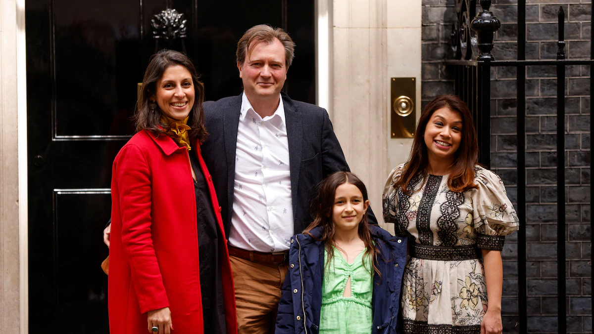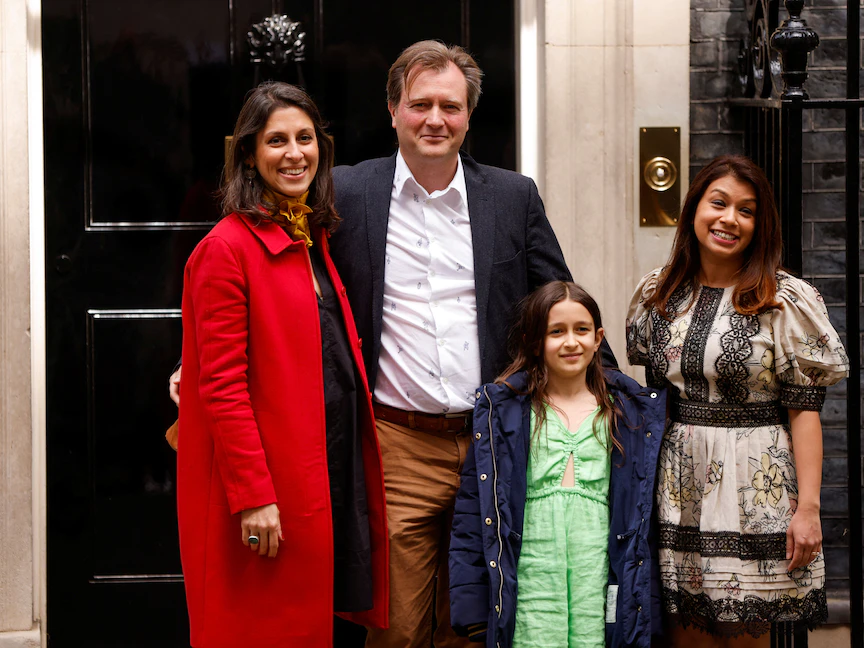 وخلال لقائها رئيس الوزراء البريطاني بعد الظهر في داونينج ستريت، كان برفقة نازنين كل من زوجها ريتشارد راتكليف وابنتهما غابرييلا والنائبة توليب صديق.