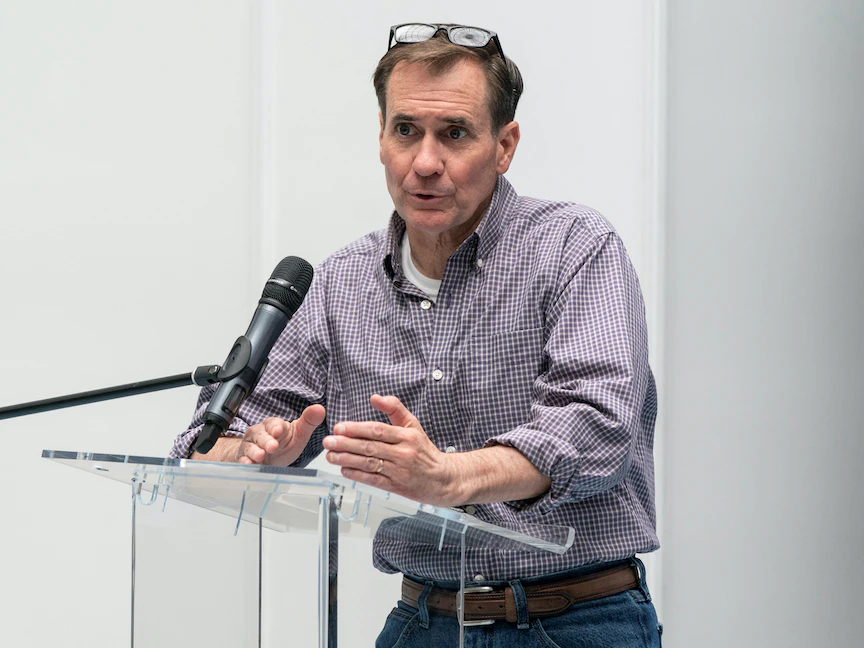 ولن يعقد كيربي جلسات إحاطة إعلامية في البيت الأبيض بصفة دورية، وفقاً للخطة الحالية، ولكنه سيساعد المتحدثة باسم البيت الأبيض كارين جان بيير على المنصة عند الحاجة.