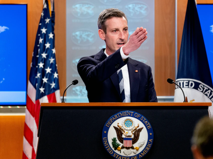 المتحدث باسم وزارة الخارجية الأميركية نيد برايس خلال مؤتمر صحافي في واشنطن - 28 فبراير 2022 - REUTERS