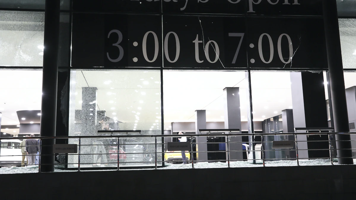 واجهة معرض للسيارات وقد تضررت إثر هجوم صاروخي على مطار أربيل الدولي الذي يضم قاعدة عسكرية لقوات التحالف الدولي، أربيل، العراق، 15 فبراير 2021 - Anadolu Agency via Getty Images