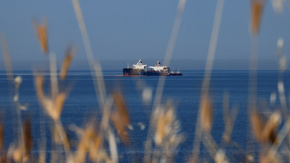 ناقلة نفط تحمل علم ليبيريا قالت اليونان إنها ستنقل حمولة الوقود الإيراني المصادرة إليها تمهيداً لتسليمها لواشنطن - 26 مايو 2022 - REUTERS