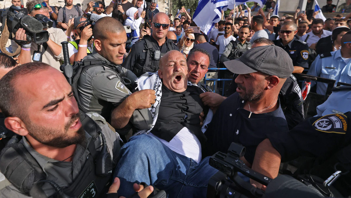 وحمل المشاركون في المسيرة حينها، الأعلام الإسرائيلية، وصولاً إلى باب العامود خارج البلدة القديمة التي تضم المسجد الأقصى، ونقلت صحيفة "تايمز أوف إسرائيل" أن أكثر من 2000 جندي إسرائيلي انتشروا في القدس المحتلة، ومحيطها، وعملوا على إخلاء الطريق لها، والاعتداء على المحتجين.