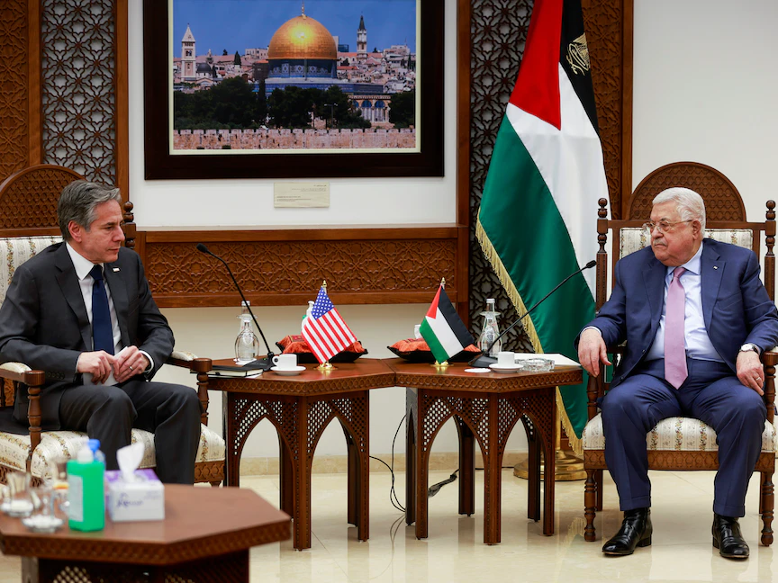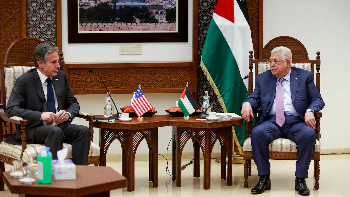 الرئيس الفلسطيني محمود عباس يلتقي وزير الخارجية الأميركي أنتوني بلينكن في رام الله- 27 مارس 2022 - REUTERS