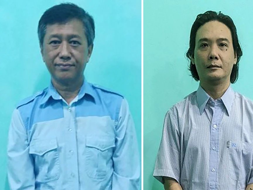 المجلس العسكري في ميانمار سينفذ حكم الإعدام بحق الناشط الديمقراطي كياو مين يو المعروف باسم "جيمي" الذي برز خلال احتجاجات الطلاب في ميانمار عام 1988 (على اليسار)، والنائب السابق مونج كياو المتهم بتدبير عدة هجمات على قوات النظام. - AFP