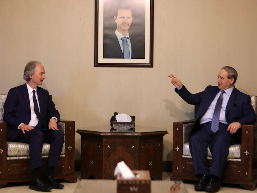 ويؤدي بيدرسون دور الوسيط في المحادثات بين 15 ممثلاً عن كل من حكومة الرئيس بشار الأسد والمعارضة والمجتمع المدني.