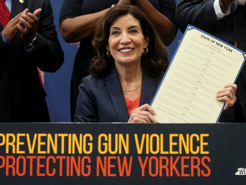 أقرّت حاكمة ولاية نيويورك كاثي هوكول، الاثنين، حزمة قوانين لتقييد حيازة الأسلحة النارية مررها مجلس شيوخ الولاية، تشمل رفع السن القانوني لشراء الأسلحة شبه الآلية، واشتراط الحصول على إذن لحيازتها.