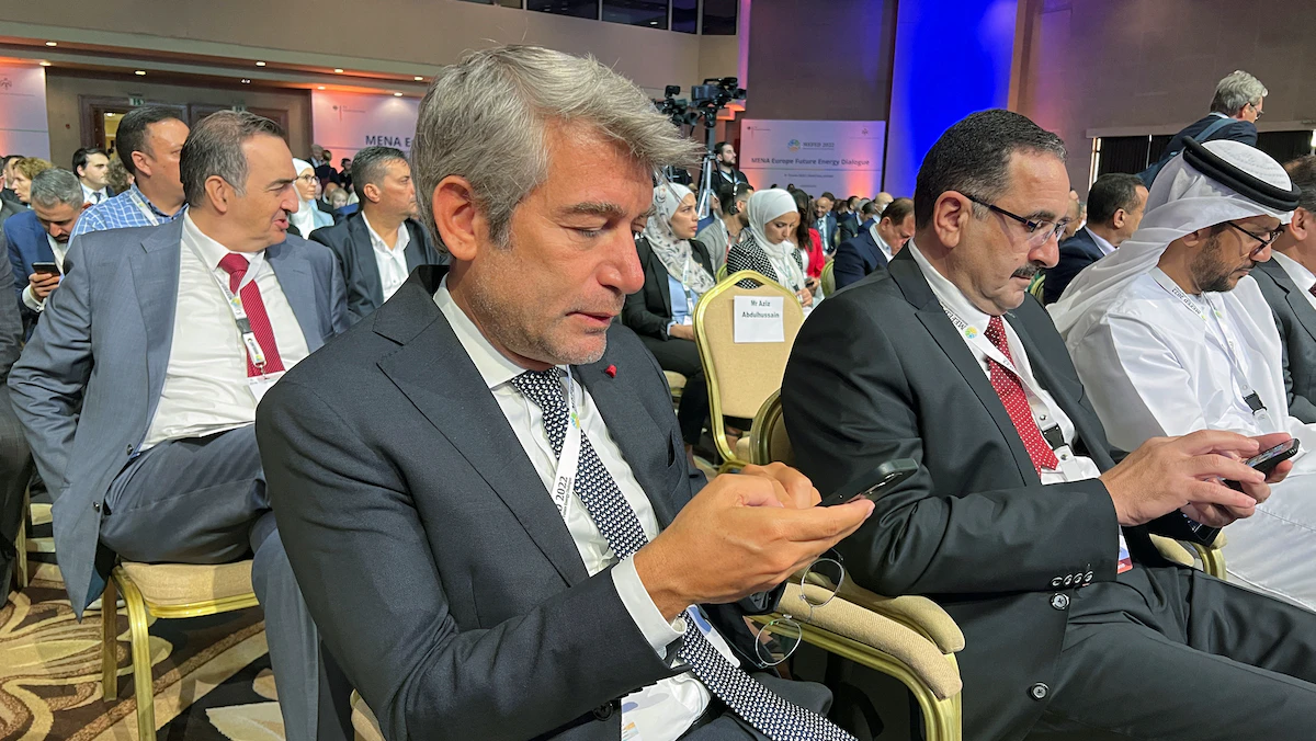 وزير الطاقة اللبناني وليد فياض خلال مشاركته في مؤتمر "حوار الطاقة المستقبلية للشرق الأوسط وشمال إفريقيا وأوروبا" بالأردن- 8 يونيو 2022 - REUTERS