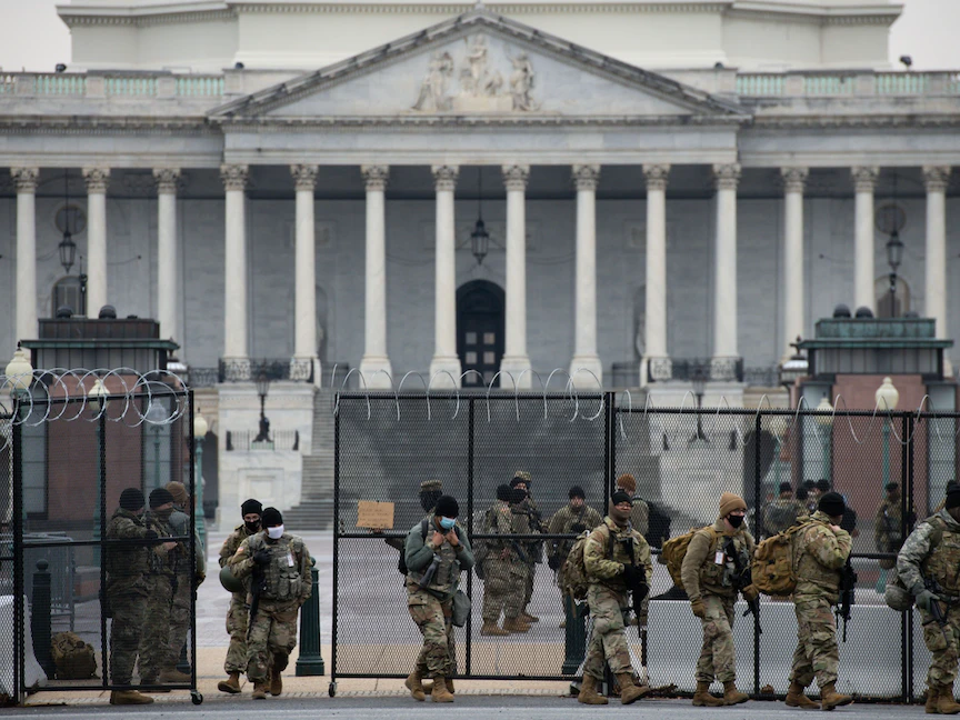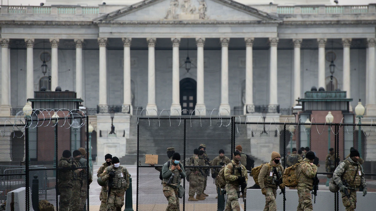 عناصر من الحرس الوطني أمام مبنى الكونغرس - 15 فبراير 2021 - Bloomberg