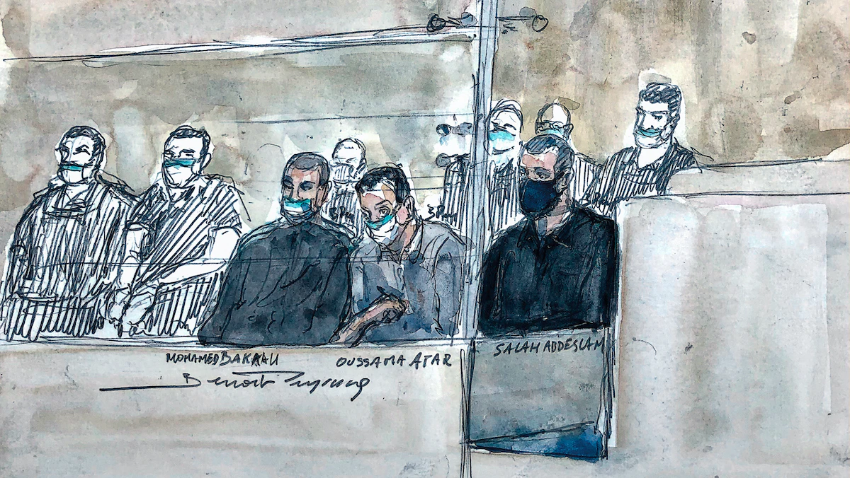 رسم تصوري لمحاكمة المتورطين باعتداءات 13 نوفمبر 2015 التي خلفت 130 ضحية في باريس - AFP