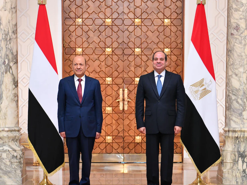 اتفق الرئيس المصري عبد الفتاح السيسي ورئيس مجلس القيادة الرئاسي اليمني رشاد العليمي، السبت، على أهمية "تكثيف العمل المشترك لحماية أمن وحرية الملاحة في البحر الأحمر"، وبحث الجانبان تعزيز أوجه التعاون بين البلدين في تطوير البنية التحتية، ومشروعات الطاقة.