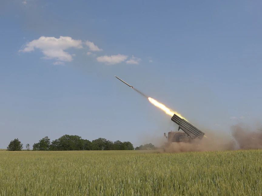القوات الأوكرانية تطلق صواريخ من طراز "جراد بي إم 21" جنوب مدينة خاركوف، أوكرانيا-11 يونيو 2022 - AFP