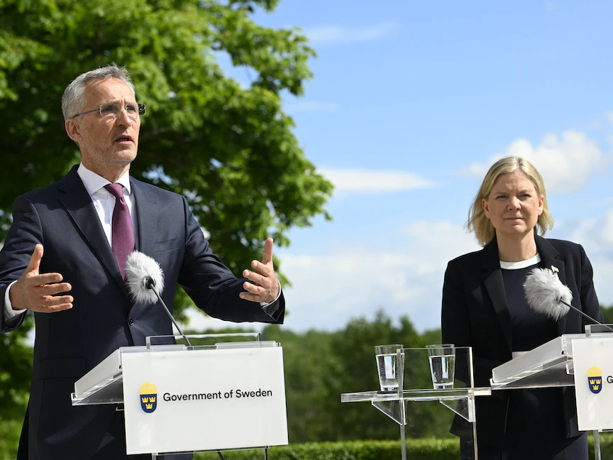 وتقدمت السويد وفنلندا بطلبين للانضمام إلى الحلف الشهر الماضي، بعد الغزو الروسي لأوكرانيا. وواجه الطلبان معارضة من تركيا، التي اعتراها الغضب بسبب ما تعتبره "دعماً سويدياً للمسلحين الأكراد" وقرار سابق بسحب تراخيص تصدير الأسلحة إلى تركيا.