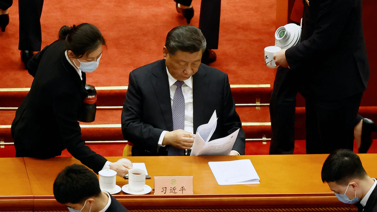 الرئيس الصيني شي جين بينج في جلسة افتتاحية في قاعة الشعب الكبرى في بكين - الصين - 4 مارس 2022 - REUTERS