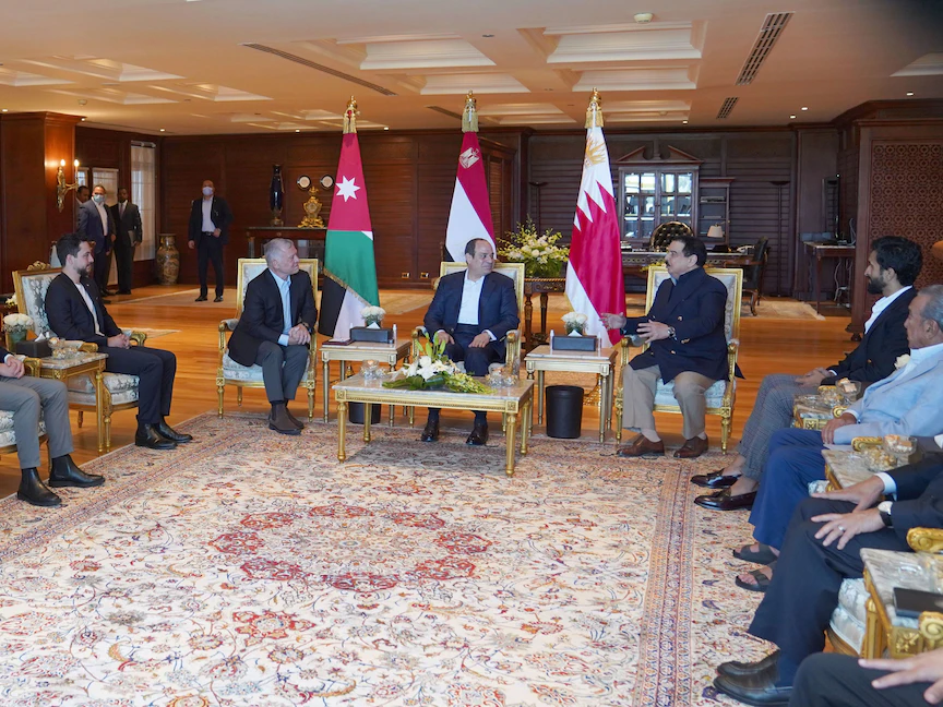 وكان الديوان الملكي في الأردن، أعلن في وقت سابق، الأحد، توجّه الملك عبد الله الثاني يرافقه ولي العهد الأمير الحسين بن عبد الله، إلى شرم الشيخ، للقاء الرئيس المصري، وملك البحرين الشيخ حمد بن عيسى آل خليفة.