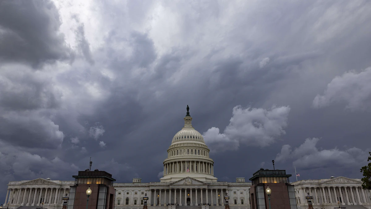 سحابة عاصفة فوق مبنى الكونجرس الأميركي بالتزامن مع تصويت على حزمة مساعدات عسكرية وإنسانية لأوكرانيا بقيمة 40 مليار دولار – 16 مايو 2022 - AFP