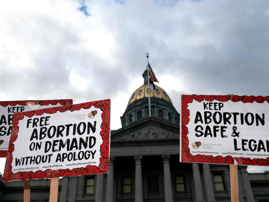 ناشطون في مجال حقوق الإجهاض يتظاهرون في كولورادو بعد قرار المحكمة العليا الأميركية - 24 يونيو 2022 - AFP