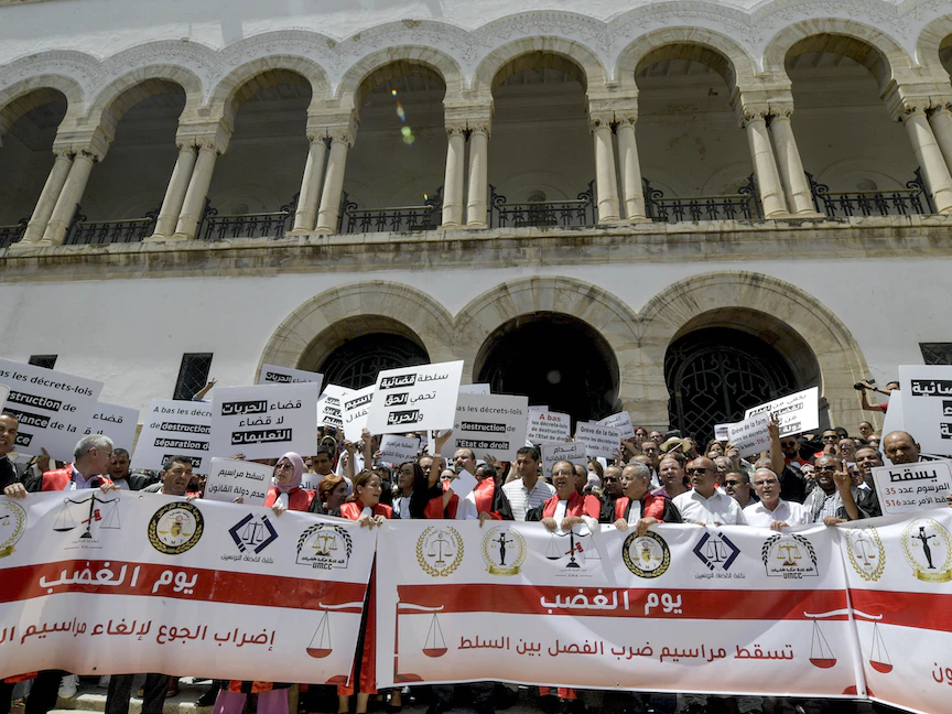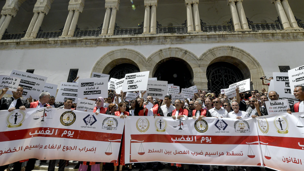 وبدأ القضاة التونسيون الإضراب عن العمل في 6 يونيو احتجاجاً على القرار والمطالبة بالكف عن التدخل في السلطة القضائية.