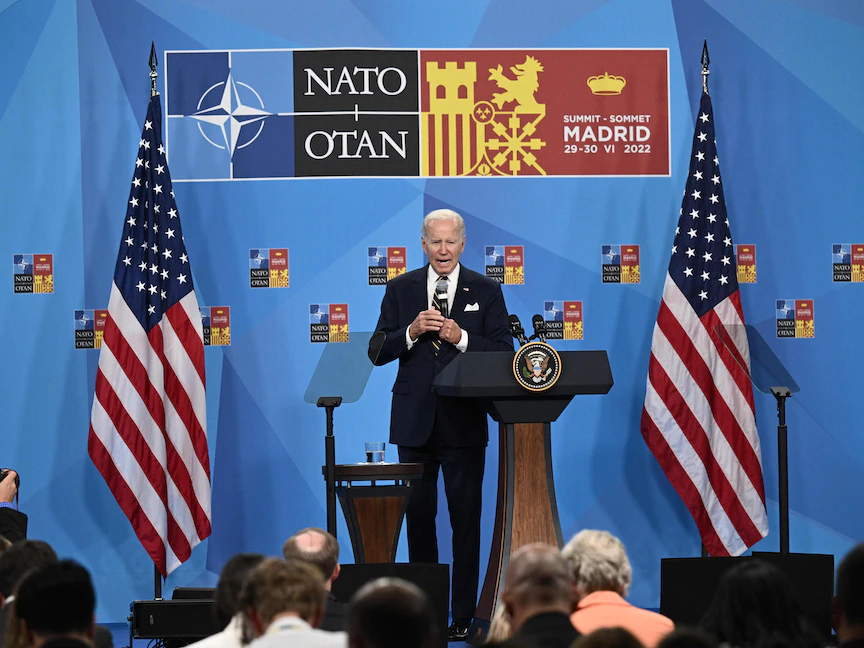 وأضاف بايدن في ختام قمة حلف شمال الأطلسي في مدريد: "سنبقى إلى جانب أوكرانيا وكل الحلف سيبقى إلى جانب أوكرانيا طالما لزم الأمر لضمان أنها لن تهزم من قبل روسيا".
