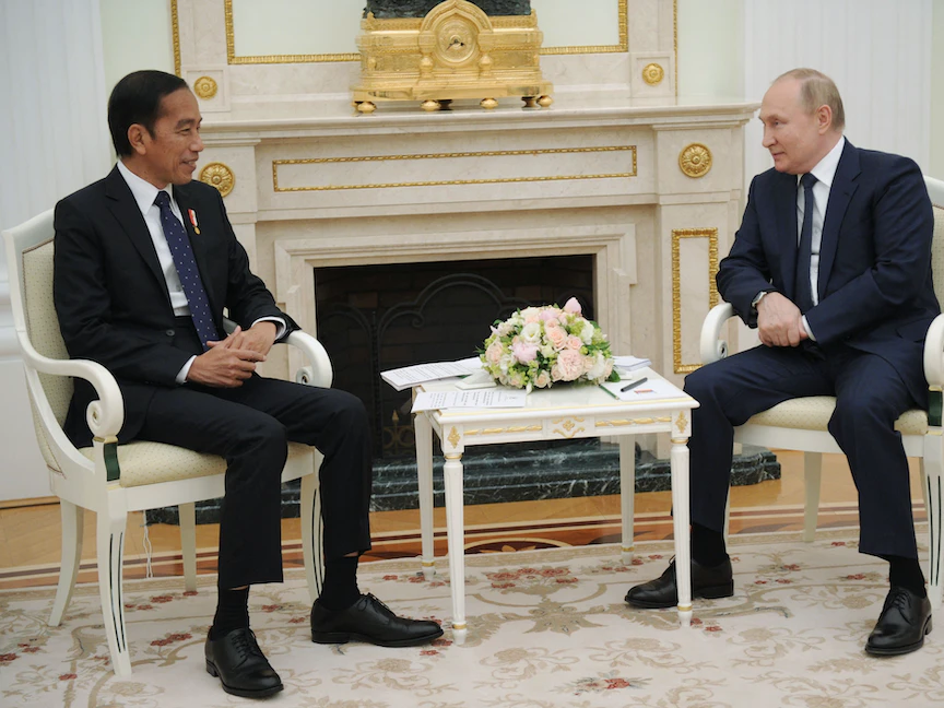 أثارت جاكرتا جدلًا بدعوة روسيا لحضور قمة مجموعة السبع للدول الصناعية الكبرى، على الرغم من الاتهامات بارتكاب جرائم حرب، بعد بدء الهجوم الروسي على أوكرانيا في 24 فبراير.