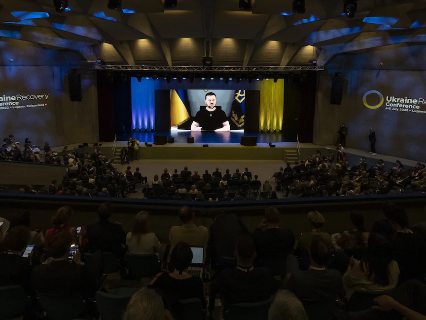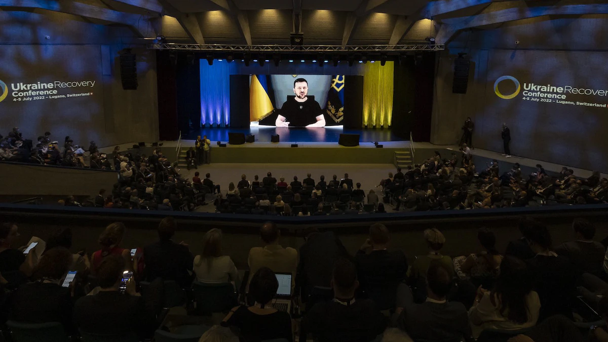 وكان منظمو المؤتمر في سويسرا يأملون مجيء الرئيس الأوكراني شخصياً، إلا أنه اكتفى بمداخلة عبر الفيديو في هذا الحدث الذي يجمع مسؤولين من الدول الحليفة لأوكرانيا والمؤسّسات الدولية وكذلك من مؤسسات من القطاع الخاص.